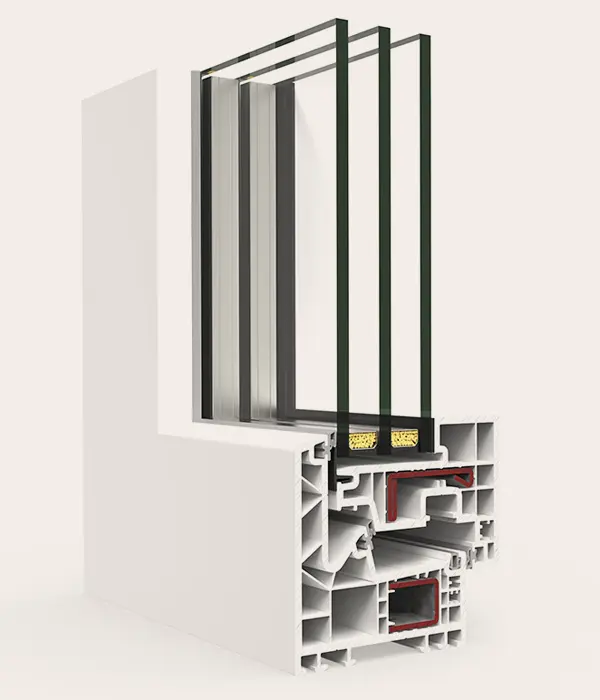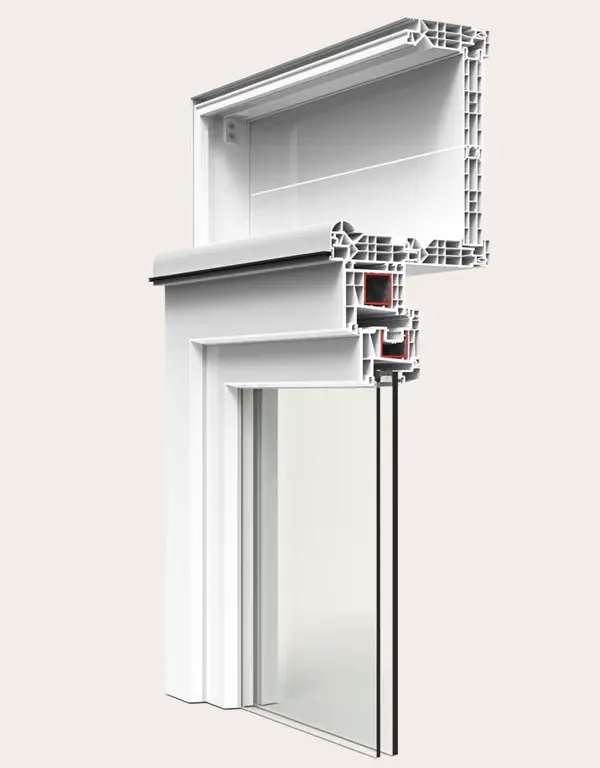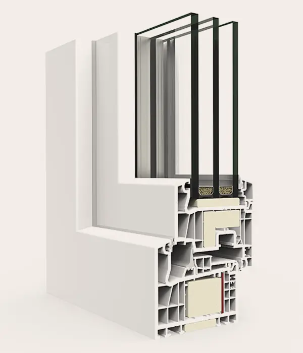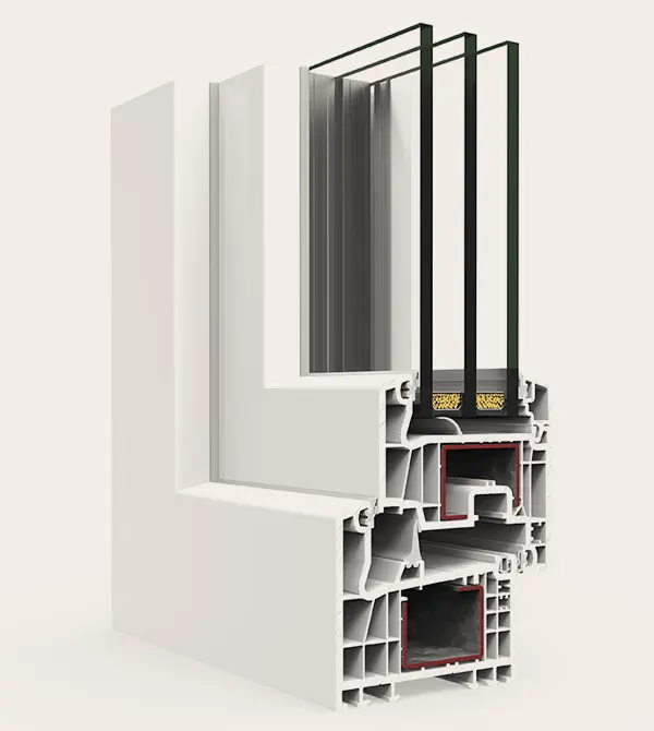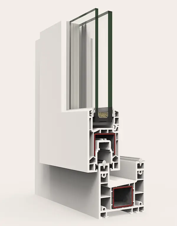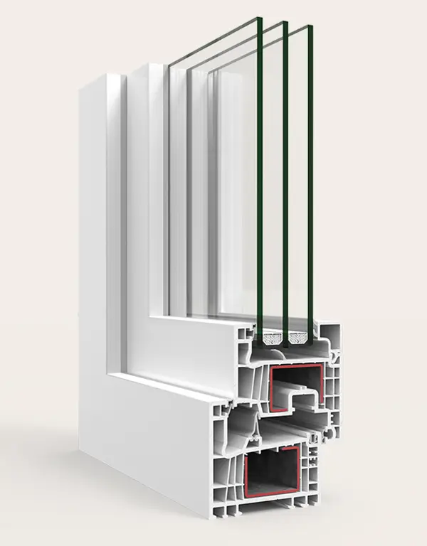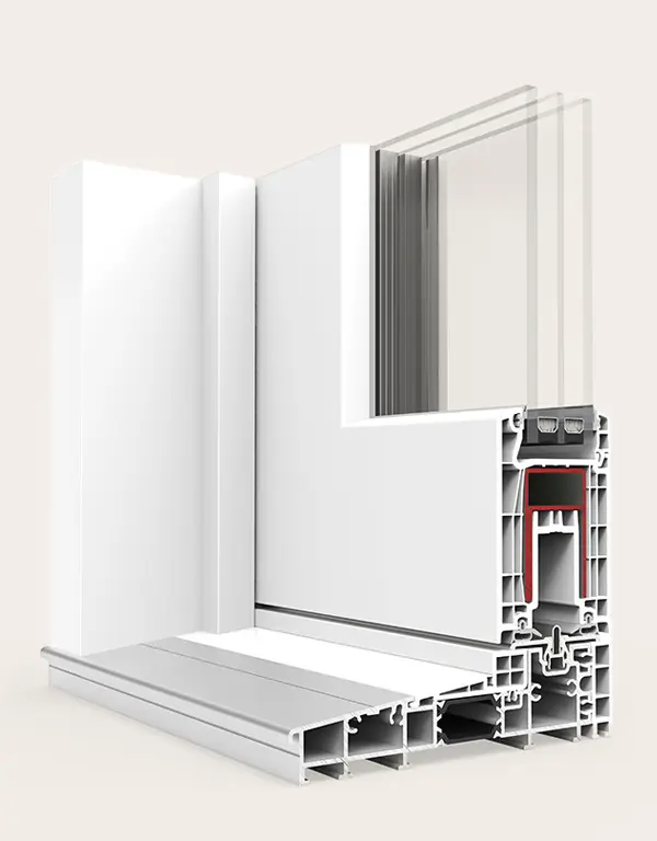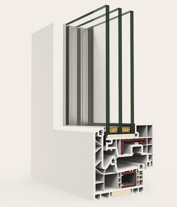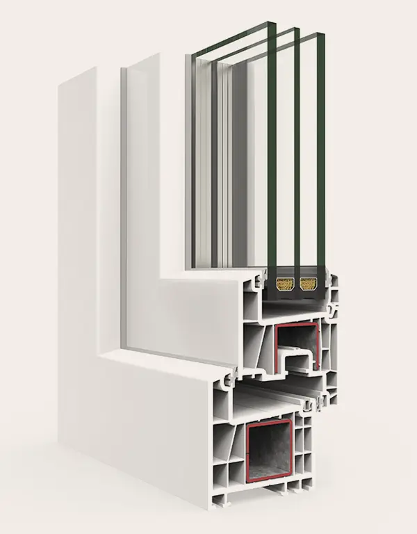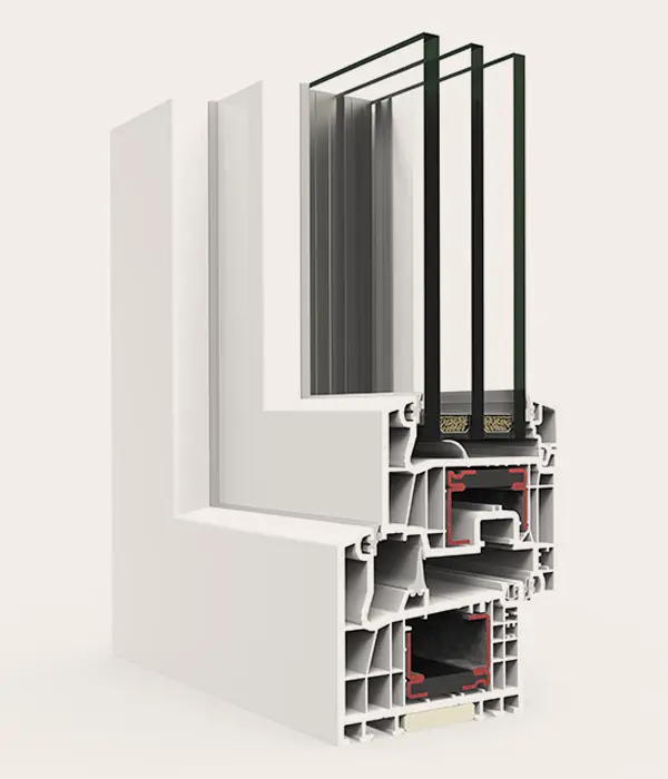 Sistema de ventana, puerta y balconera de PVC con estética recta. Ofrece un gran rendimiento térmico y acústico gracias a su perfilería de 78 mm con seis cámaras y a su capacidad de acristalamiento de hasta 48 mm. La versión Passivhaus está certificada en la categoría warm-temperate.
