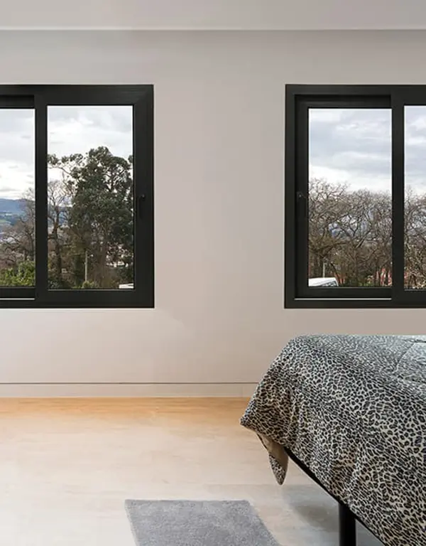 Sistema de ventana y balconera correderas de 70 mm de profundidad de marco con un óptimo rendimiento térmico y acústico. Posibilidad de nudo central minimalista de 30 mm.